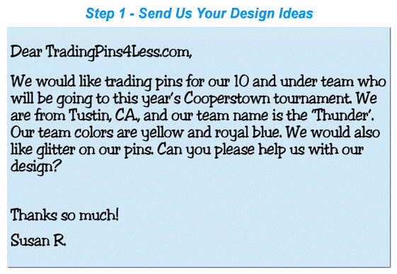 Please browse the pages of our website and either call us Toll Free, or email us through our Free Quote Form with your design requests and a member of our highly trained staff will give you a formal quotation and create a digital proof of your team pin design! It's just that easy so why wait any longer? Contact us Now!