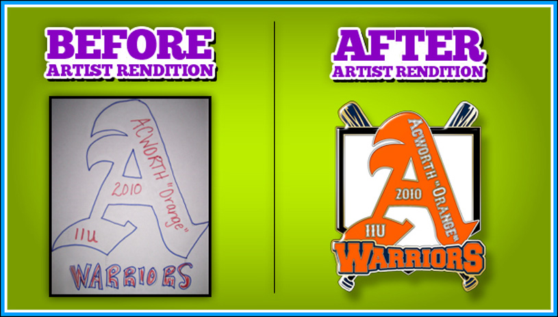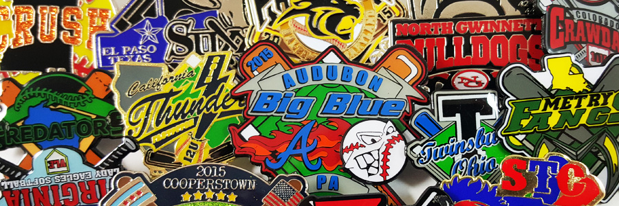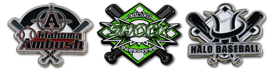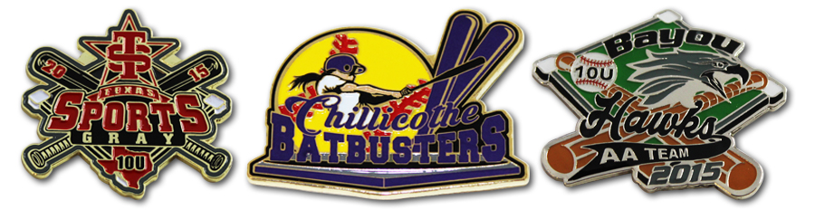 We have carefully selected Trading Pin types and sizes that have historically dominated and continue to rule at Pin Trading events with respect to tradability or "Trading Power". The pin sizes, quantities and styles shown on this site make up the "Sweet Spot" of the Trading Pin market segment. We specialize in all team sports including baseball pins, fast pitch softball pins, soccer pins, hockey pins, umpire and coach pins, Cooperstown pins, Odyssey of the Mind and many others. All of our pins are produced quickly and ship via UPS or FedEx Priority Air Delivery. This service is included in our pricing which some might find unbelievable.